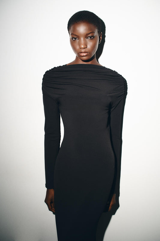 Vestido Midi Drapeado Joya Espalda
