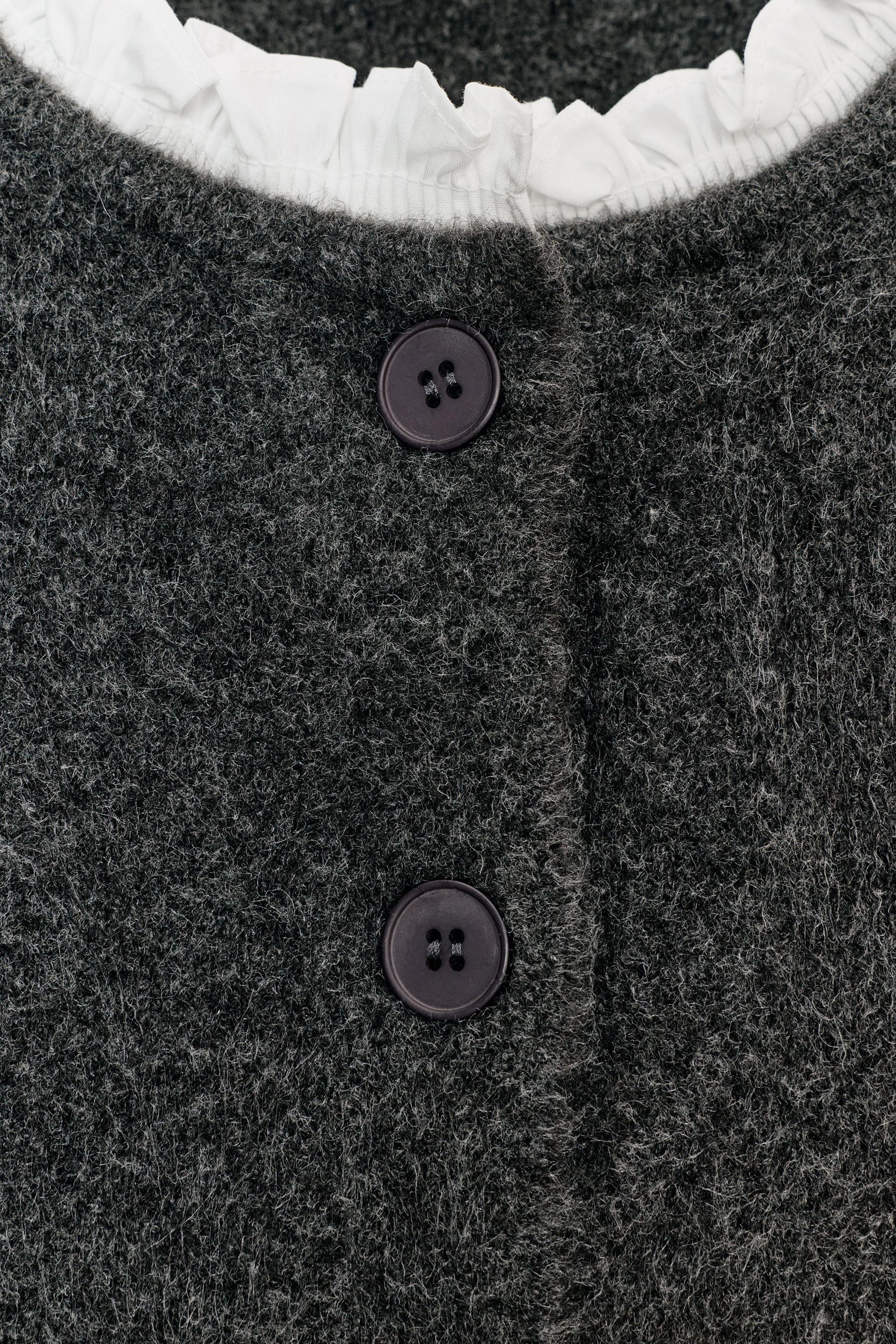 - Detalle de tejido combinado con acabados en popelín con volantes