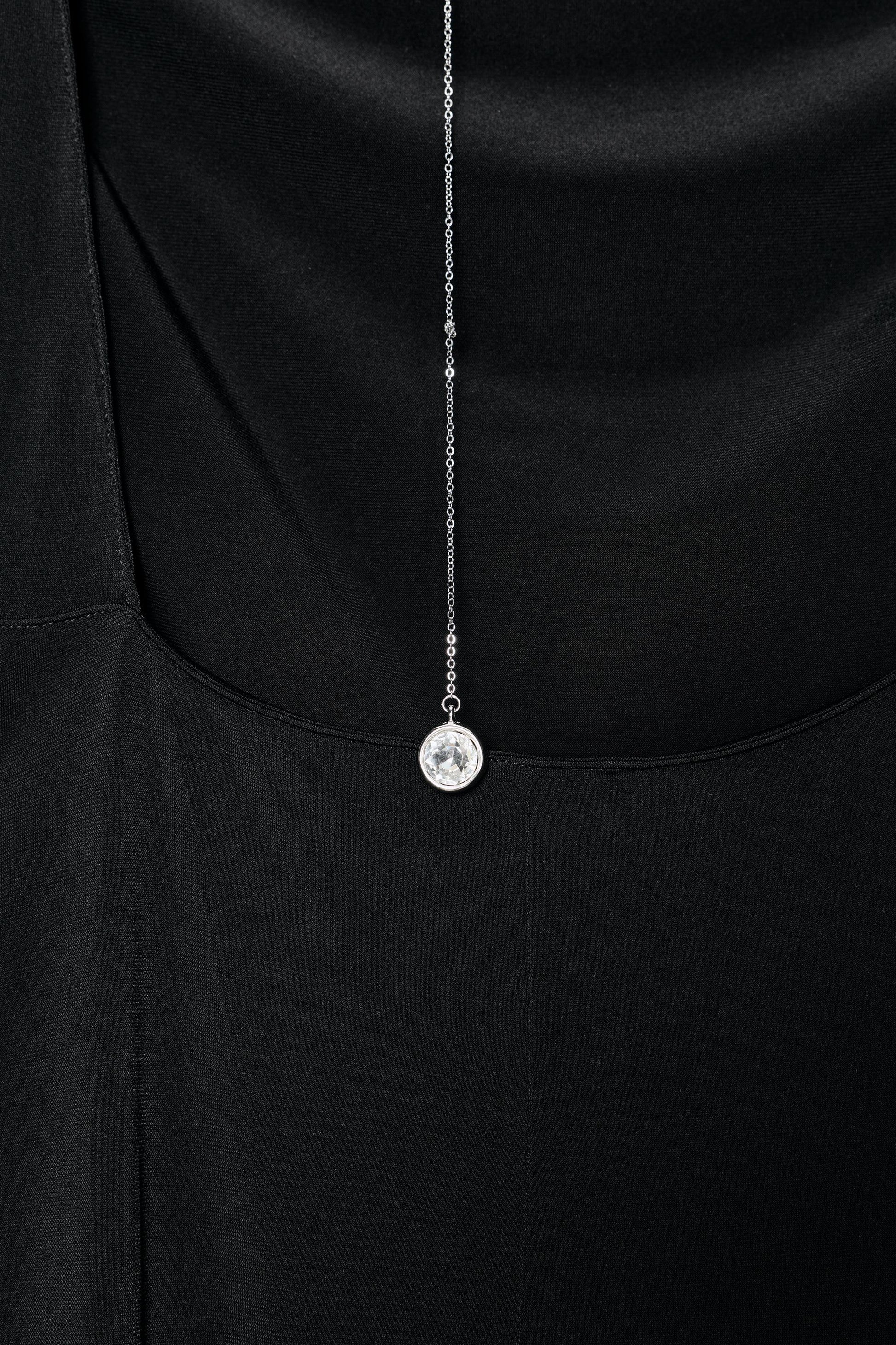- Cierre con tira cruzada de eslabones metálicos ajustables con mosquetón y colgante joya